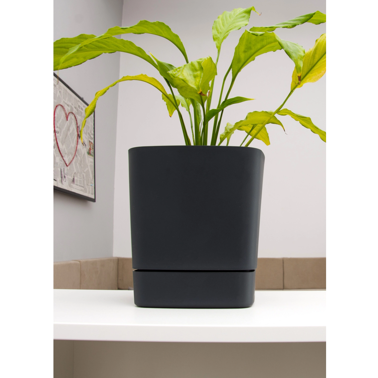 Ghiveciul stilat CLIMA, în culoarea neagră, completează perfect atât interioarele moderne, cât și pe cele clasice. Forma sa geometrică și finisajul mat evidențiază frumusețea naturală a plantelor, în timp ce materialul de calitate din plastic reciclat asigură o durată lungă de viață și întreținere ușoară.