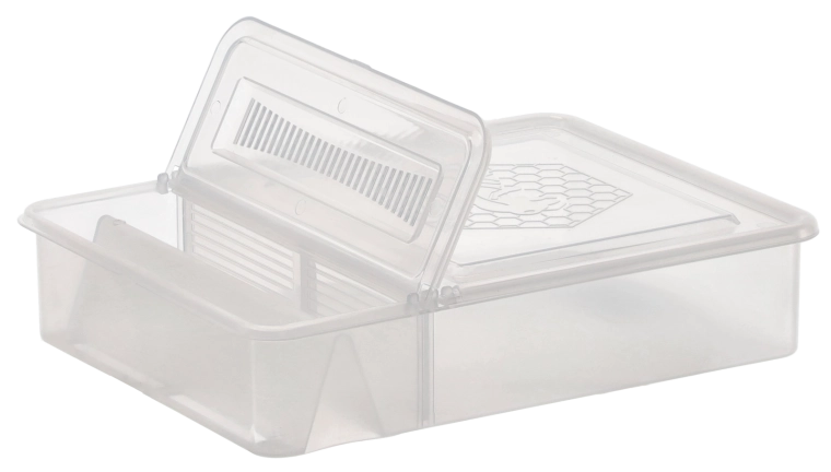 Această hrănitoare de pod pentru albine este ideală pentru administrarea hranei lichide sau a siropului. Pereții transparenți permit verificarea vizuală instantanee a cantității de hrană, iar plasticul robust asigură durată de viață lungă și rezistență la utilizarea de zi cu zi.