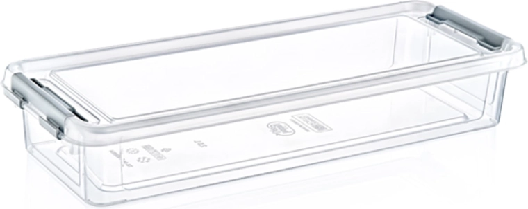 Cutie modernă dreptunghiulară din plastic de înaltă calitate, potrivită atât pentru bucătării tradiționale, cât și moderne. Pereții transparenți permit controlul facil al conținutului, iar capacul solid cu închidere prin clips pe ambele părți asigură o etanșeitate fiabilă. Cutia este potrivită și pentru temperaturi scăzute, menținând fructele și legumele proaspete mai mult timp.