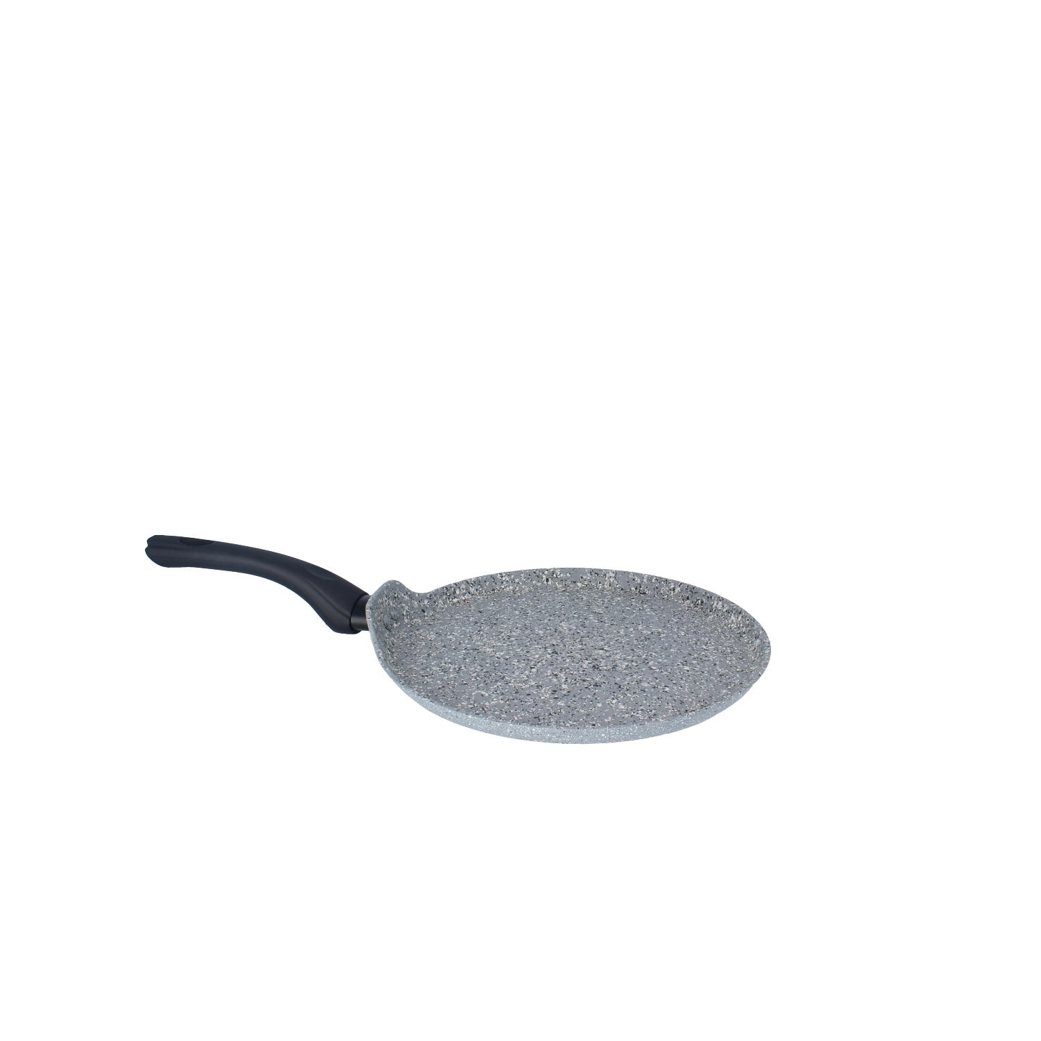 Această tigaie cu margine joasă este concepută pentru clătite perfect subțiri și rețete rapide de mic dejun. Aluminiul forjat cu grosime de 4,0 mm la perete și 3,0 mm la bază oferă stabilitate ridicată, conductivitate termică excelentă și rezistență la deformare. Finisajul tip granit pe ambele fețe este rezistent la temperaturi înalte și zgârieturi, astfel încât tigaia arată și funcționează excelent pe termen lung.