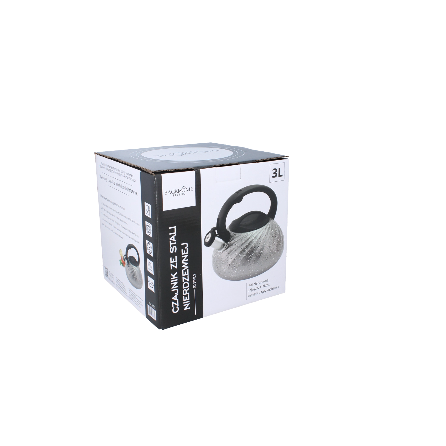 Ceainicul elegant din inox Swirly, cu o capacitate de 3 l, este ideal pentru fierberea zilnică a apei. Datorită corpului din oțel 201 și bazei din oțel 430, oferă încălzire rapidă și durată lungă de viață. Mânerul și capacul ergonomice din nailon asigură utilizare sigură și confortabilă, în timp ce fluierul vă avertizează fiabil la punctul de fierbere. Finisajul argintiu cu aspect patinat adaugă un aer elegant bucătăriei.