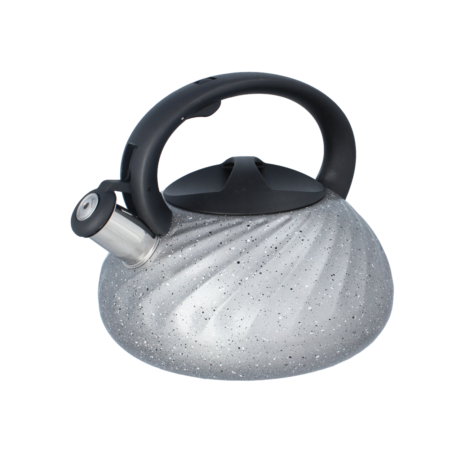Suprafața interioară cu tratament glass powder se întreține ușor, iar mânerul ergonomic din nailon rămâne plăcut la atingere în utilizarea de zi cu zi. Capacul cu fluier de pe gura ceainicului vă avertizează imediat ce apa este gata, astfel încât nu veți mai da apa în foc.