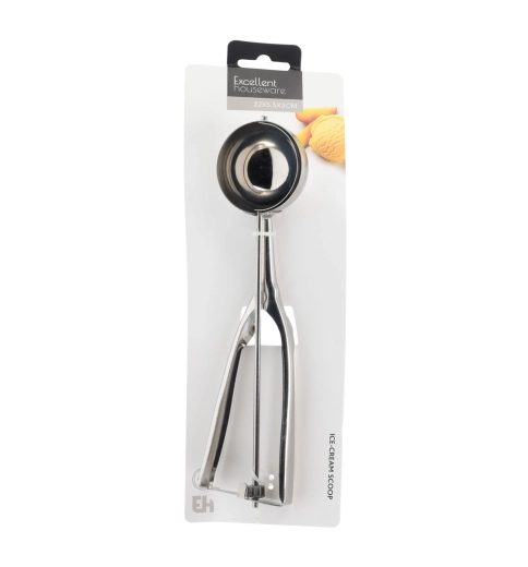 Această lingură de înaltă calitate pentru înghețată este concepută pentru formarea precisă și rapidă a bilelor din înghețată, sorbeturi și alte deserturi. Oțelul inoxidabil asigură rezistență la coroziune și durată lungă de viață, în timp ce mecanismul integrat permite eliberarea ușoară a bilei prin apăsarea mânerului.