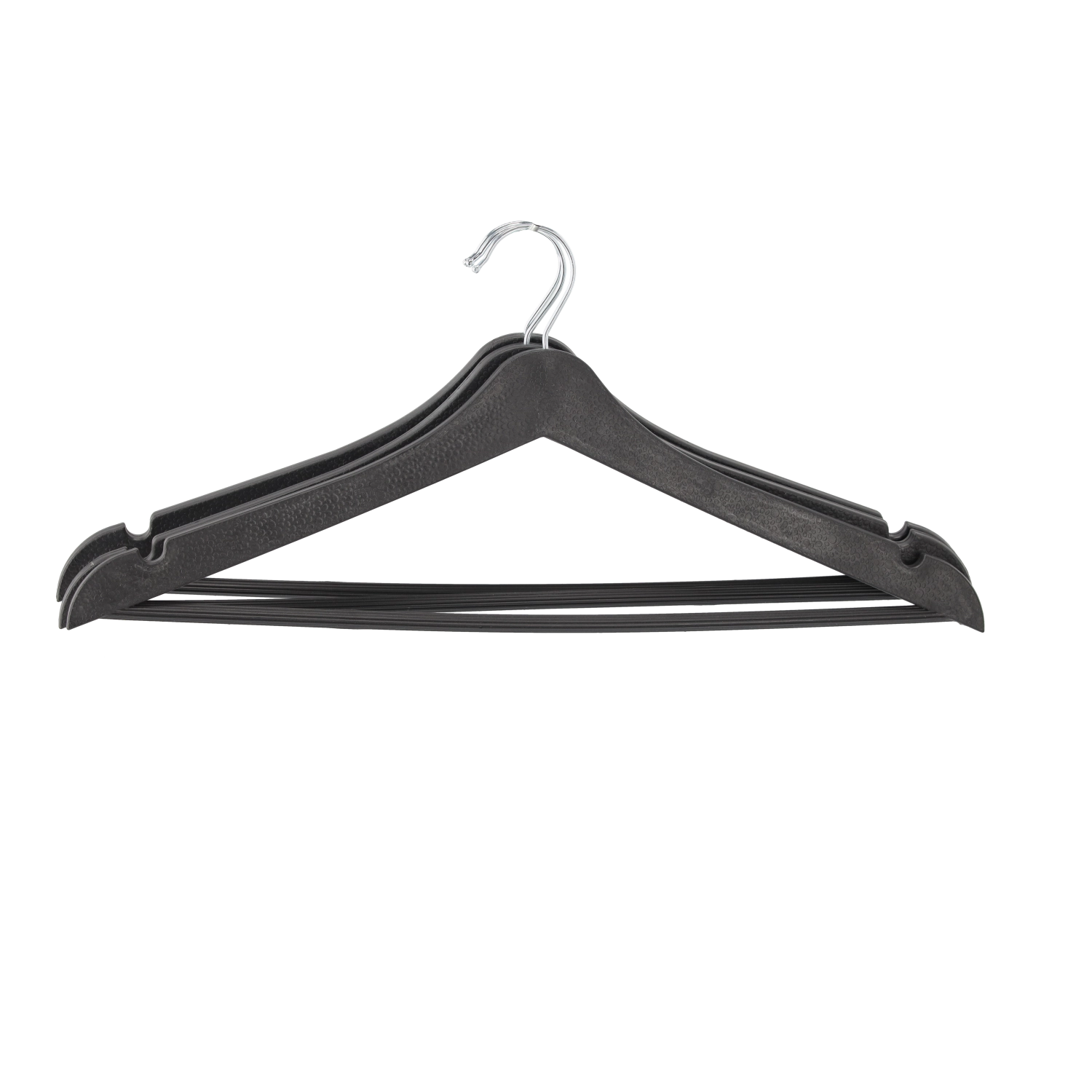 Cârligul rotativ la 360° permite schimbarea ușoară a orientării hainelor pe bară, șanțurile de pe umeri țin în siguranță piesele cu bretele, iar bara inferioară este ideală pentru pantaloni, eșarfe sau curele. Construcția solidă din ABS și PET, cu finisaj din catifea de nailon, face față și paltoanelor ori puloverelor mai grele.