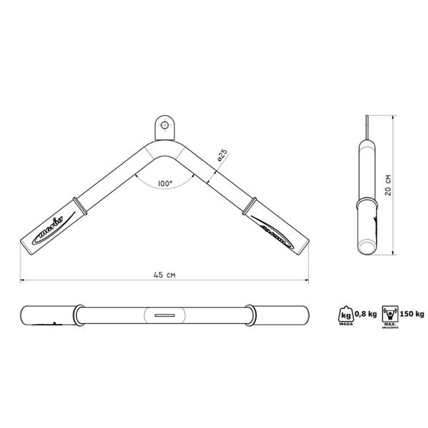 Ridică-ți antrenamentul brațelor la un nivel superior cu adaptorul pentru triceps MARBO. Construcția robustă cu profil 40 × 40 mm și lungimea practică de 45 cm oferă stabilitate și confort pentru executarea precisă a exercițiilor. Datorită diametrului prizei de 25 mm, adaptorul se potrivește excelent în mână și reduce alunecarea.