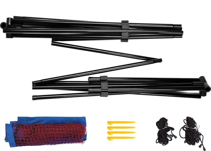 - Plasă portabilă 3‑în‑1 (badminton, tenis, volei)