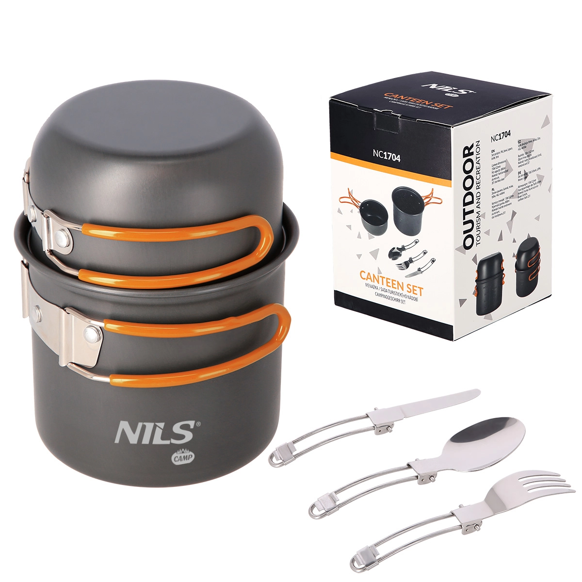 NILS Camp aduce un set practic de vase pentru drumeții, camping și expediții pe apă. Oala și tigaia mică/mini-tigaia din aluminiu eloxat rezistă la coroziune și intemperii, iar mânerele rabatabile din oțel inoxidabil cu înveliș din cauciuc sporesc siguranța prinderii. Datorită designului stivuibil și plasei de transport, setul se împachetează ușor și ocupă minimum de spațiu.