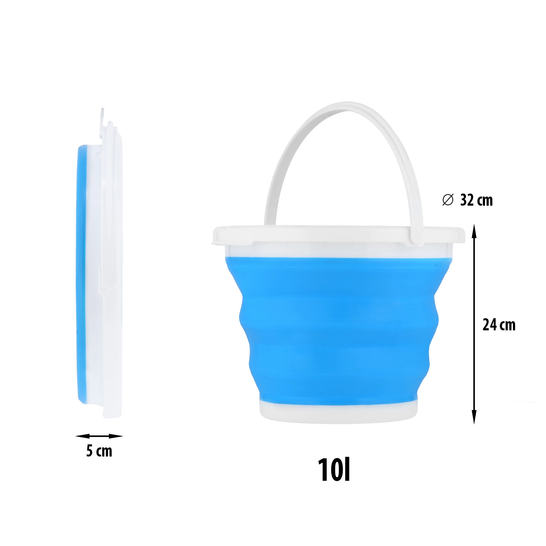 Găleata se pliază într-o formă plată de aproximativ 5 cm înălțime, economisind spațiu în rucsac, rulotă sau locuință.
