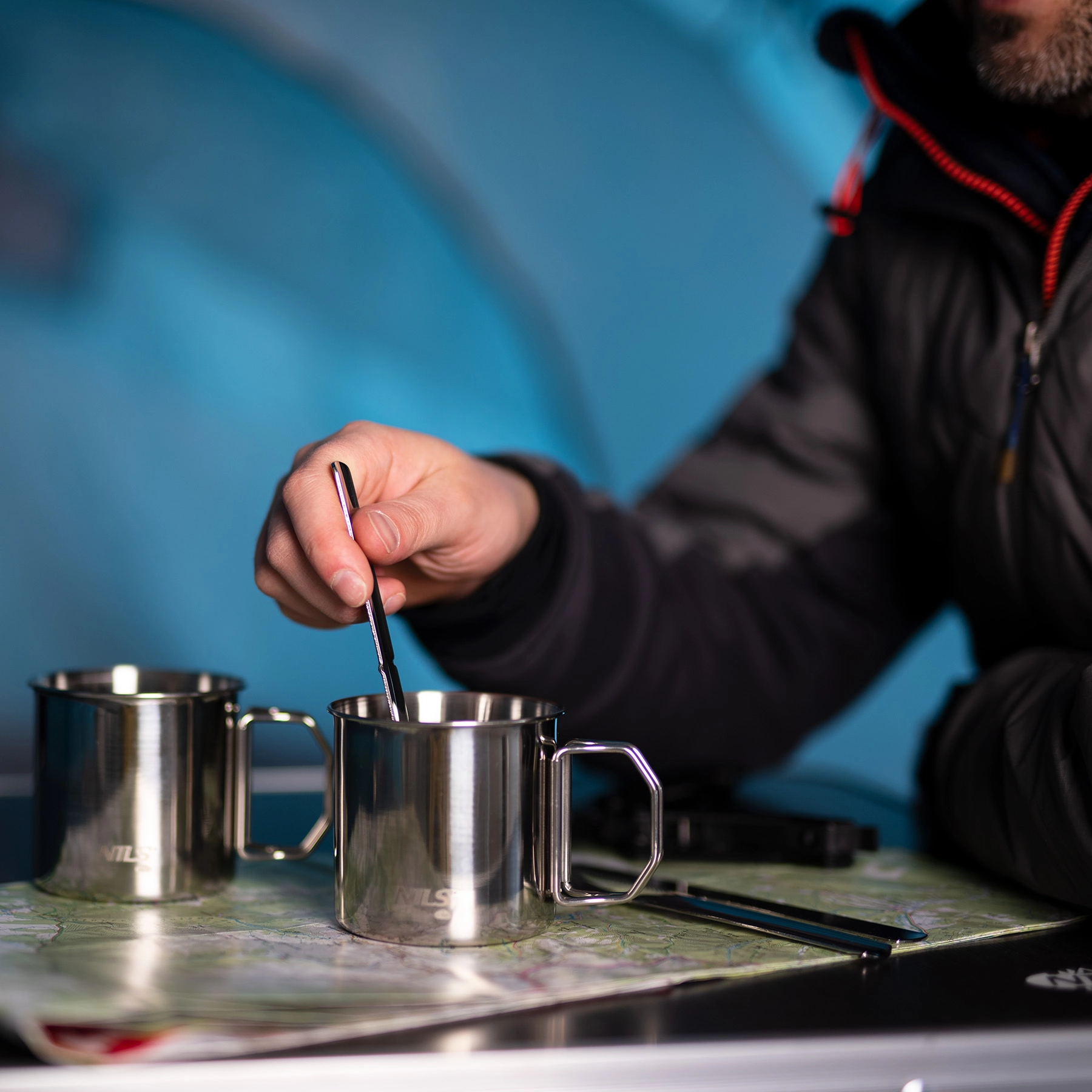 Mânerele pliabile economisesc spațiu în rucsac și asigură o priză confortabilă chiar și la băuturi fierbinți. Fiecare cană cântărește doar 80 g, astfel încât întregul set este extraordinar de ușor și ușor de împachetat, ideal pentru drumeții pe jos și trasee mai lungi.