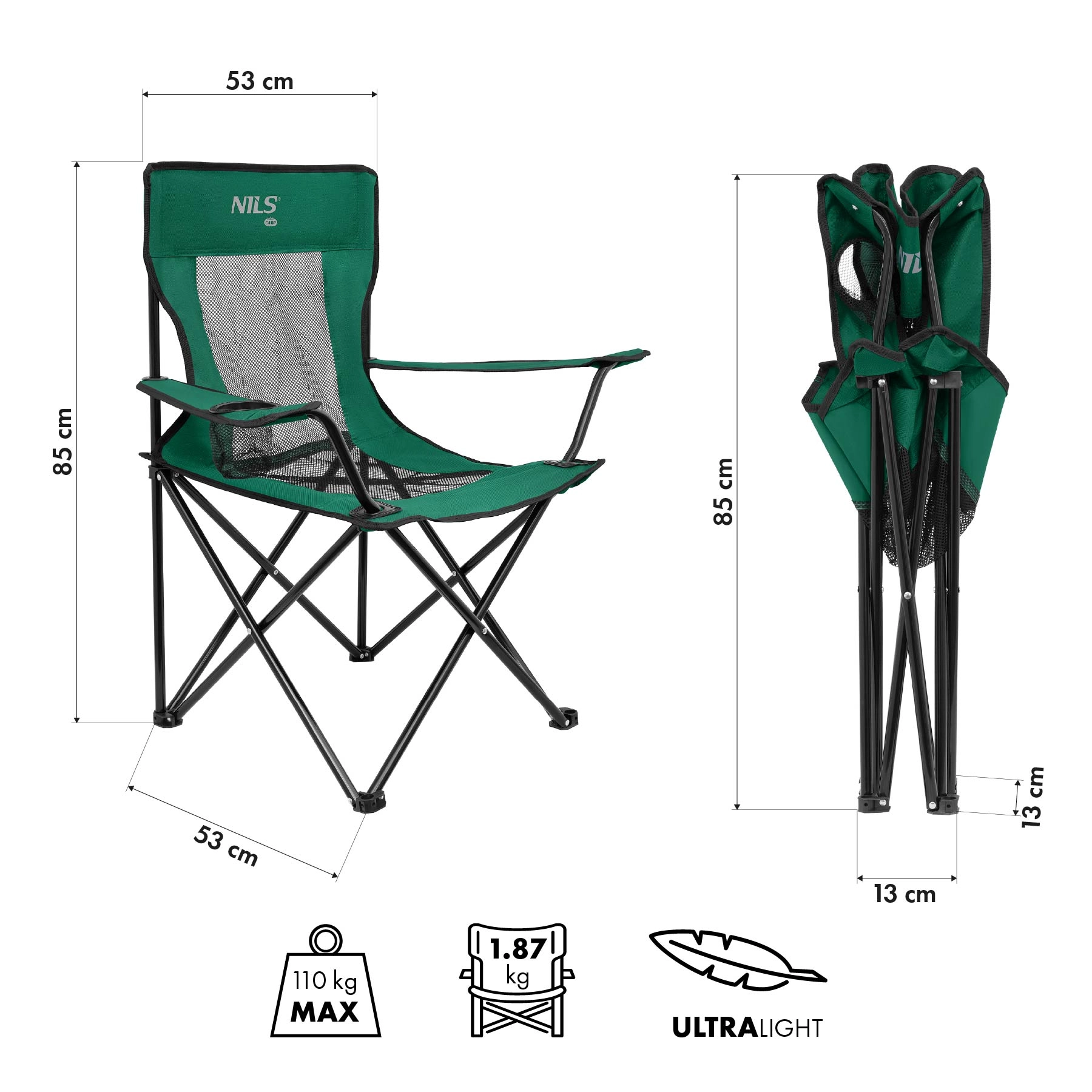 Bucurați-vă de confort oriunde în aer liber cu scaunul pliabil NILS Camp. Țesătura rezistentă 600D cu strat PE și plasa respirabilă centrală oferă confort chiar și la șederi prelungite. Cadrul din oțel, din profile cu diametrul de 16 mm, asigură stabilitate și durată de viață îndelungată.