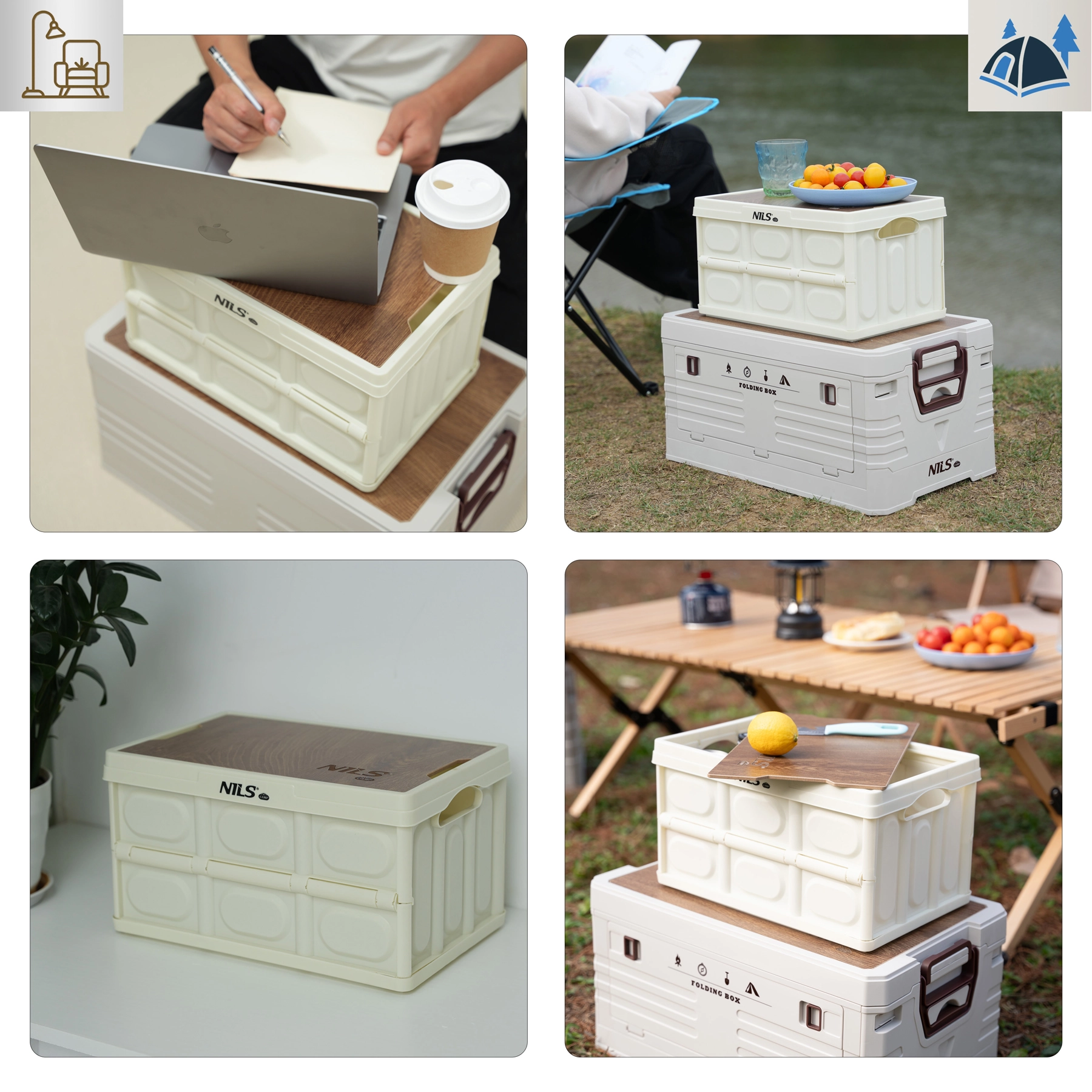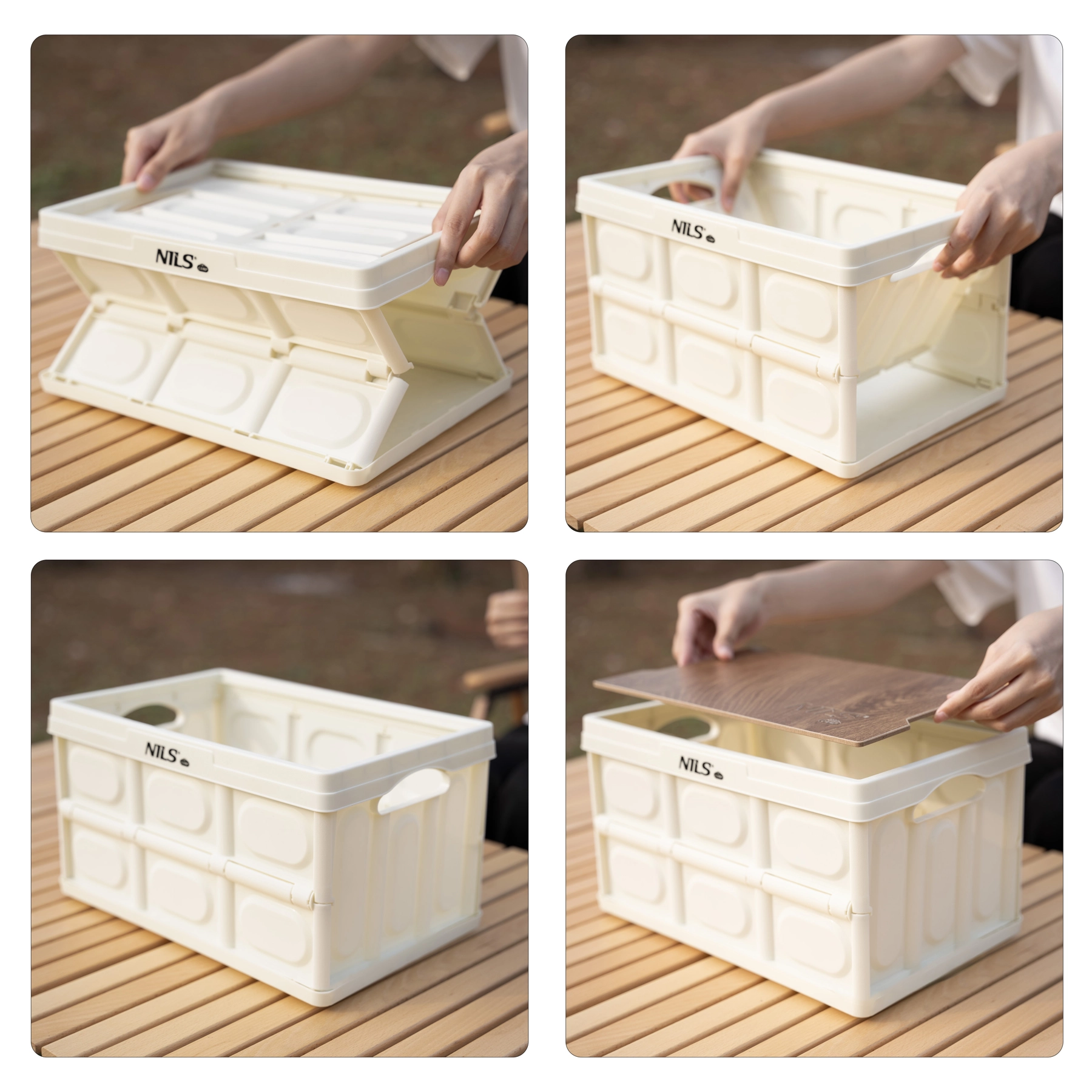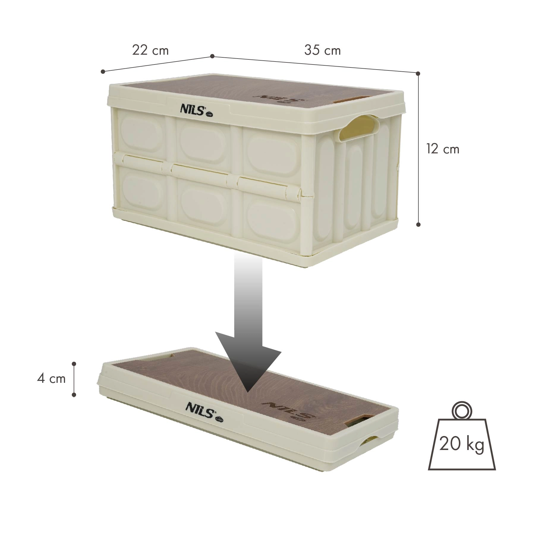 Lada pliabilă practică NILS Camp, cu volum de 9 l și capac solid cu decor de lemn, servește atât ca cutie de depozitare, cât și ca măsuță mică. Datorită construcției pliabile până la 4 cm, greutății reduse și designului modular stivuibil, este ideală pentru mașină, casă, camping și atelier. Sarcină maximă până la 20 kg și polipropilenă rezistentă pentru o durată de viață îndelungată.