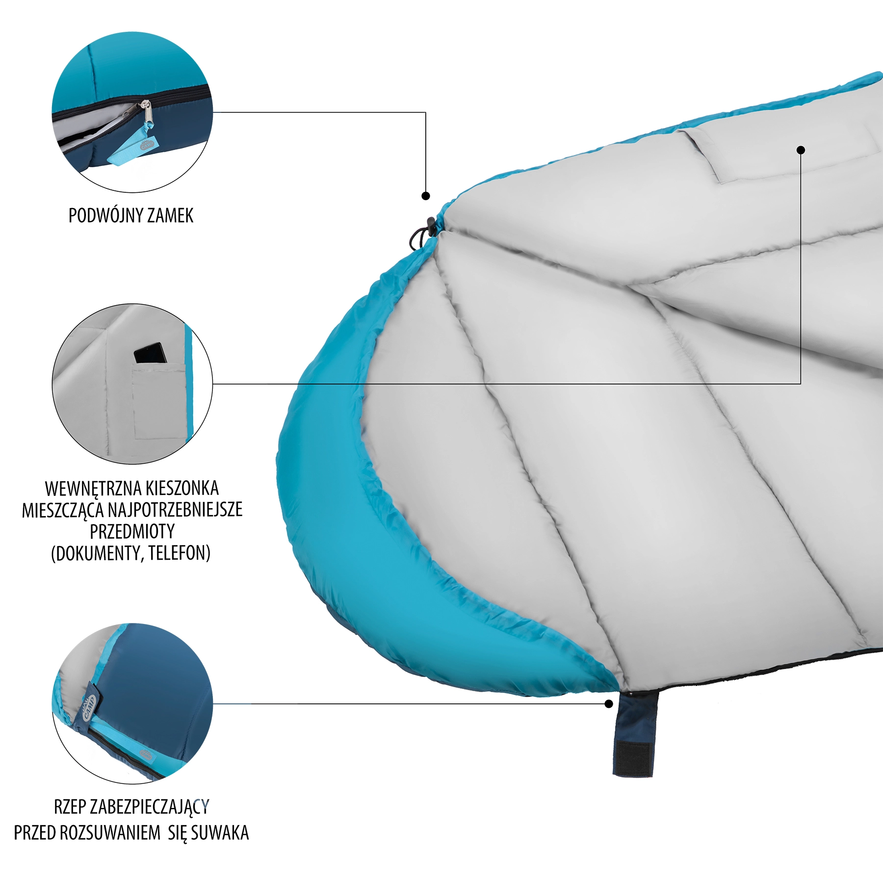 Sacul de dormit tip mumie NILS Camp este conceput pentru un somn confortabil în condiții mai răcoroase. Croiala mai strâmtă urmează forma corpului și, împreună cu gluga reglabilă, păstrează căldura în interior. Căptușeala interioară 190T Pongee este plăcută la atingere, iar exteriorul din poliester 190T W/R Cire protejează împotriva frigului și a umezelii. Umplutura din fibră goală 300 g/m² oferă izolație uniformă și stabilă, susținută de o matlasare atentă.