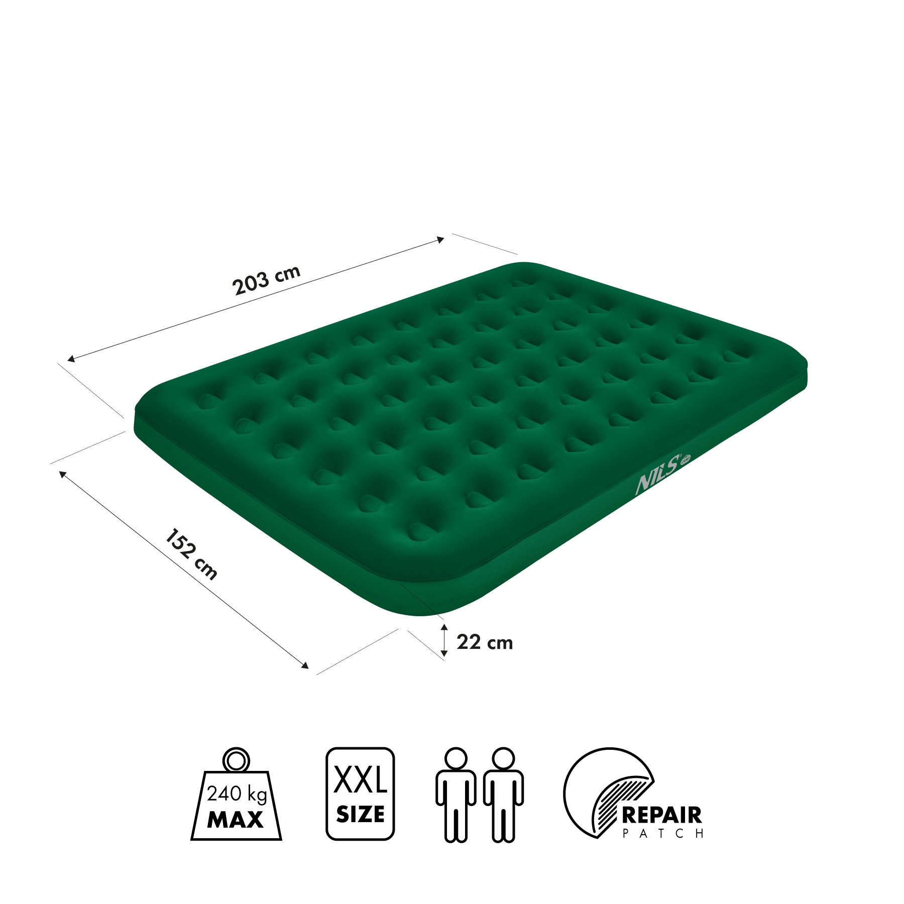 Salteaua gonflabilă NILS Camp este o alegere ideală ca pat suplimentar în locuință și un partener de încredere pentru camping, festivaluri sau escapade de weekend. Suprafața generoasă oferă mai mult spațiu decât un pat dublu obișnuit, iar înălțimea de 22 cm izolează eficient de solul rece sau denivelat.
