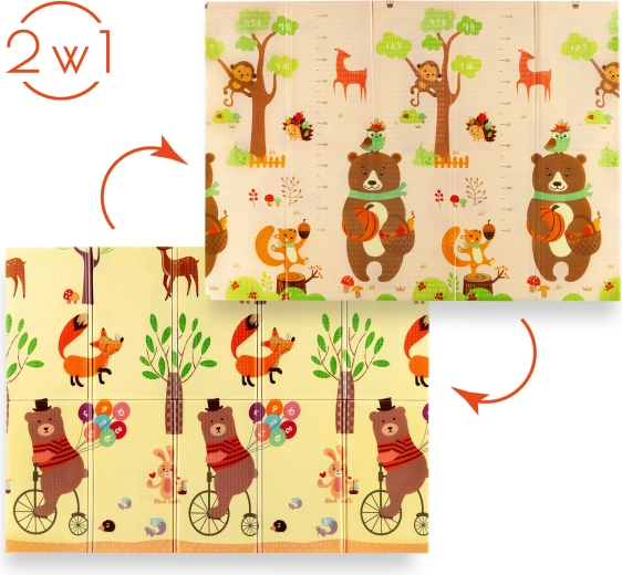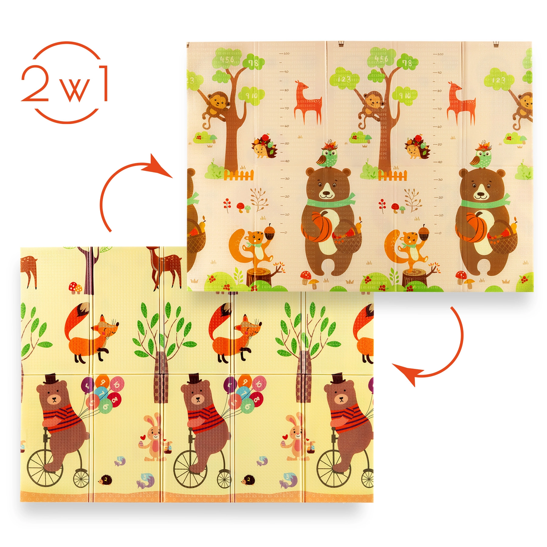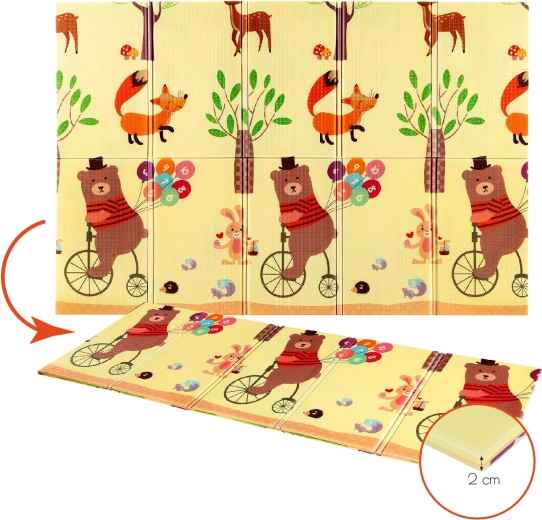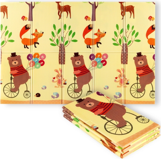 Salteaua pentru copii NILS Fun Forest, practică și sigură, oferă dimensiunea 190 × 150 cm, o spumă XPE plăcut moale și o suprafață antiderapantă. Este pliabilă, dublu-față, izolează bine de frig și amortizează căderile la primii pași. Literele și cifrele în relief sprijină învățarea prin joc și dezvoltarea motricității. Se livrează într-o geantă de transport pentru depozitare și călătorii ușoare.