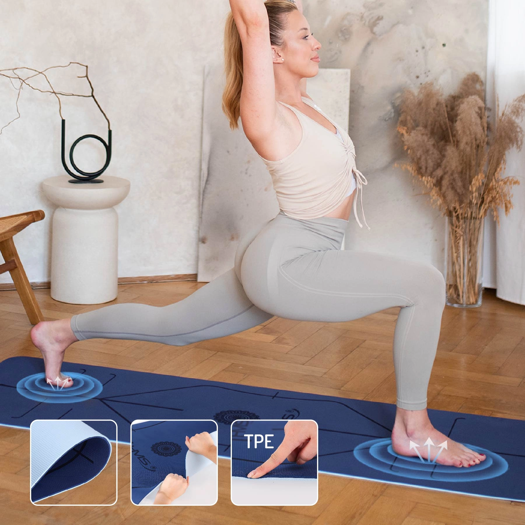 Suprafața texturată din TPE asigură un grip sigur și o amortizare moale, protejând articulațiile în pozițiile de yoga, pilates și antrenamentele dinamice.