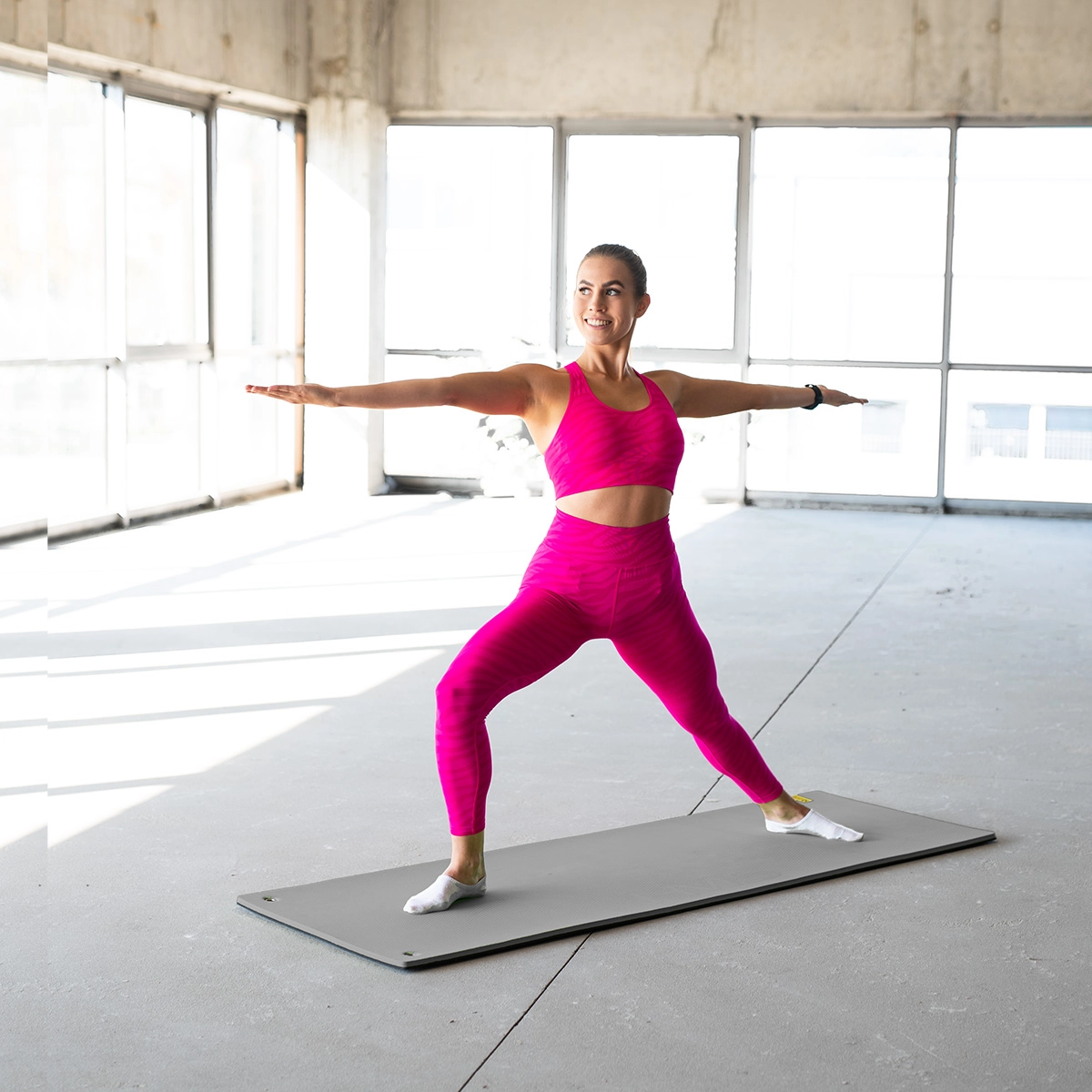 Combinația TPE (10 mm) și EVA (5 mm) protejează articulațiile, absoarbe șocurile și sporește confortul la fiecare exercițiu – de la planșe până la secvențe cu sărituri.