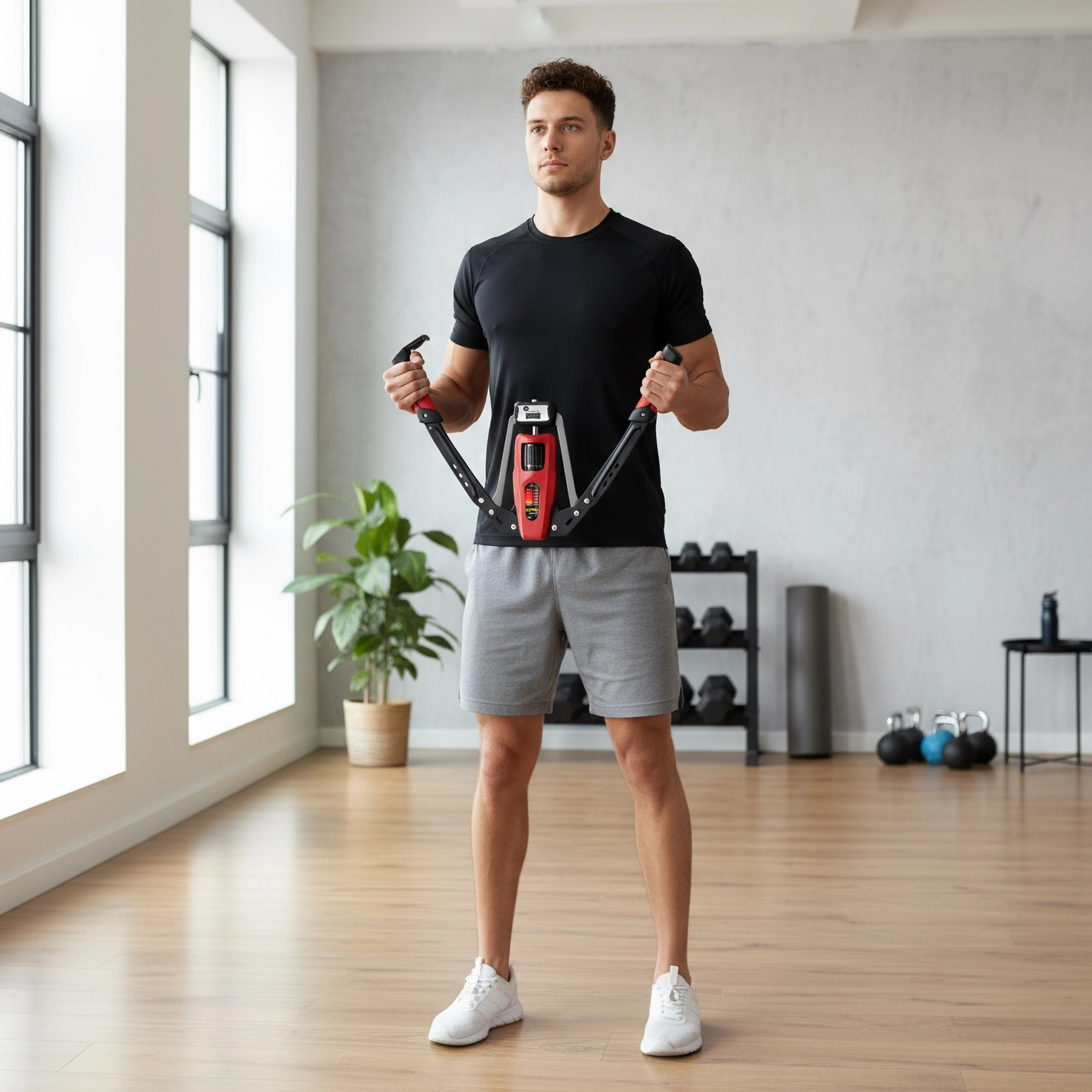Construcția robustă, dar compactă, cu blocare împotriva deschiderii și mânere antiderapante din TPR oferă confort și siguranță în timpul exercițiilor. Pliați, are doar 43 × 17 cm și cântărește aproximativ 2,5 kg, astfel încât încape ușor în sertar sau în geanta de sport. Îl poți folosi pentru antrenamentul țintit al pectoraliilor, bicepșilor, tricepșilor, umerilor și al părții superioare a spatelui.