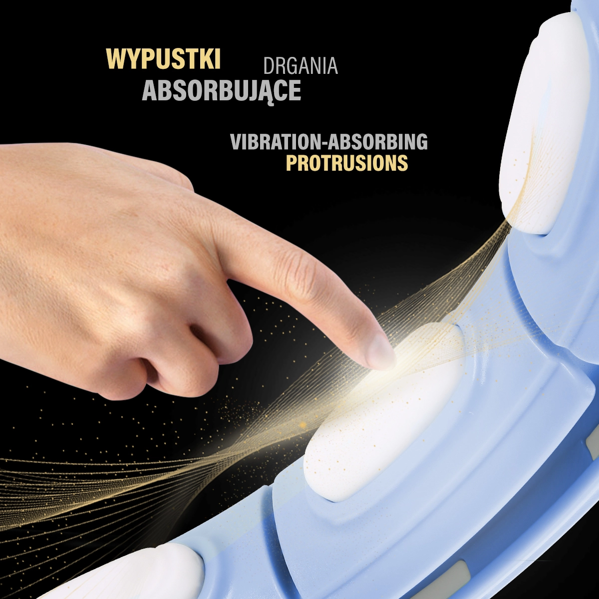Greutatea rotativă de 400 g este atașată la o sfoară cu lungime reglabilă (20–38 cm), ceea ce îți permite să modifici intensitatea antrenamentului – cu cât sfoara este mai lungă, cu atât forța centrifugă este mai mare. Proeminențele magnetice stimulează plăcut zona taliei, susțin circulația sângelui la nivelul pielii și cresc eficiența exercițiilor. Materialele de calitate (PVC, ABS, PP, TPR și oțel) asigură durabilitate și confort în utilizarea regulată.