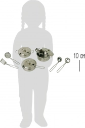 Gătiți ca profesioniștii! Acest set de veselă metalică pentru copii este conceput exact pentru mânuțele mici și transformă orice bucătărie de jucărie într-un loc plin de creativitate și distracție. Include oale cu capace, tigaie, polonic și alte ustensile pentru servire. Susține imaginația, jocul de rol, dezvoltarea abilităților sociale și a motricității fine.