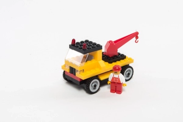 Construiește vehiculul de lucru galben cu braț și o figurină de constructor – ideal pentru scenete de pe șantier și pentru dezvoltarea imaginației.