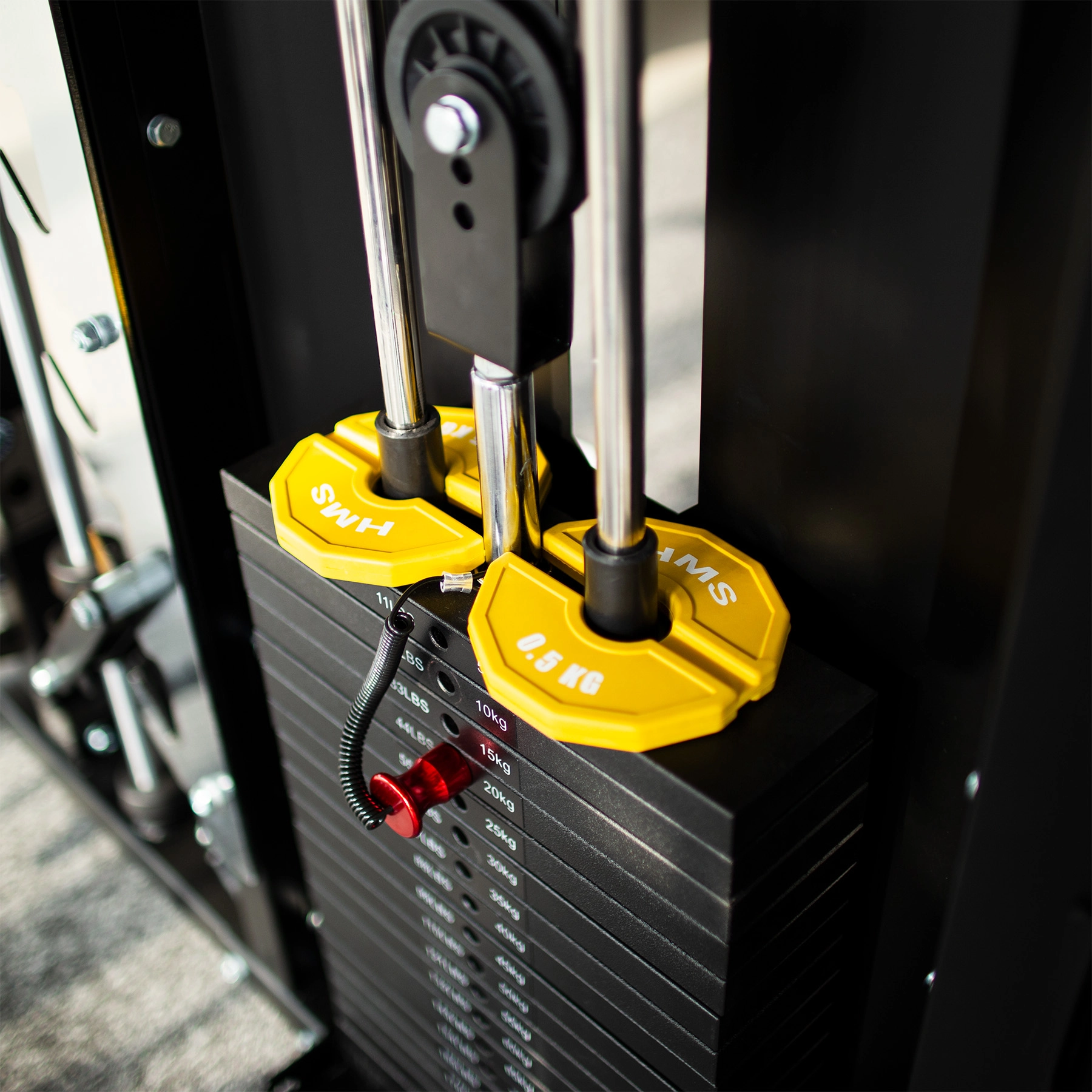 Datorită masei de 2 × 0,5 kg, reglați cu ușurință încărcătura totală în pași mici, ideal pentru antrenament de forță, serii tehnice și exerciții de reabilitare. Codarea pe culori și dimensiunile compacte asigură claritate și compatibilitate cu majoritatea echipamentelor de fitness.