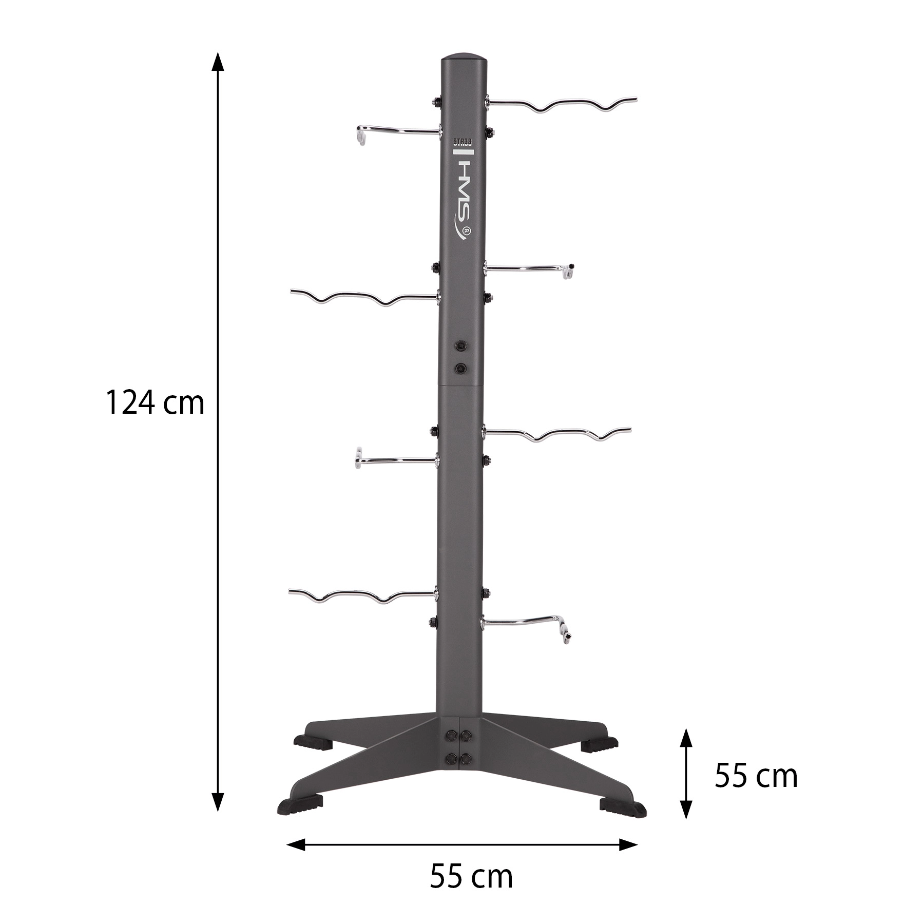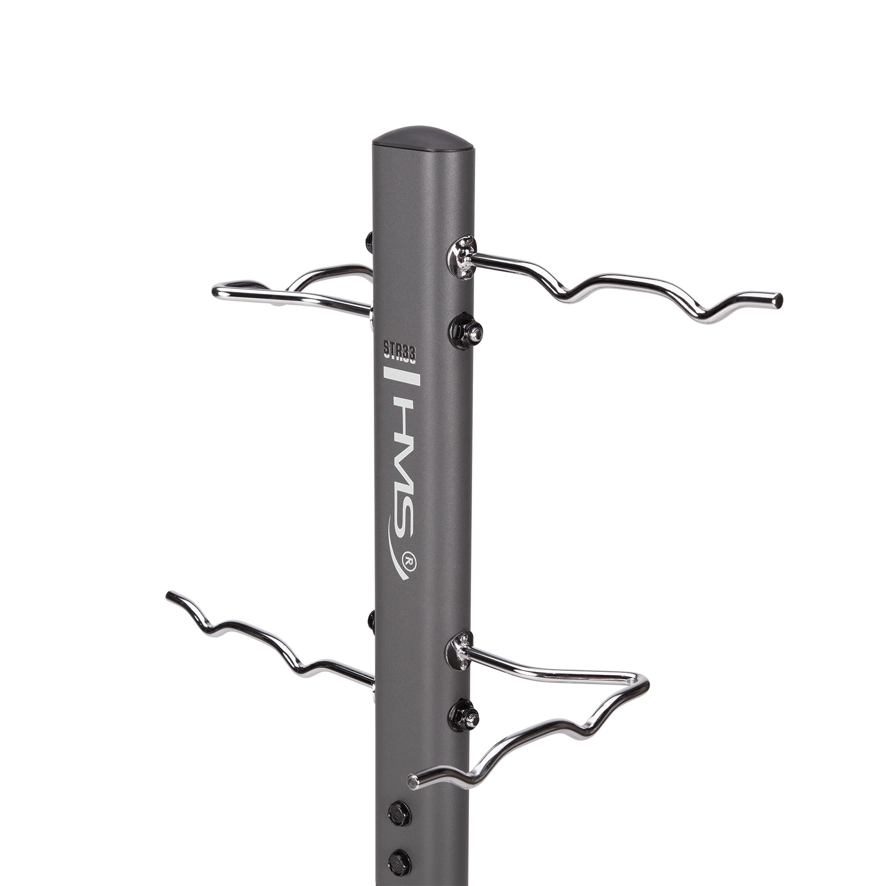 Suportul pentru accesorii HMS STR33 este o soluție inteligentă pentru organizarea accesoriilor fitness. Construcția robustă din oțel, cu bază lată, oferă stabilitate ridicată, în timp ce cele opt cârlige cu o capacitate de până la 30 kg fiecare pot susține mai multe atașamente simultan. Datorită formei gândite a cârligelor, echipamentul se agață în siguranță și rămâne mereu la îndemână.