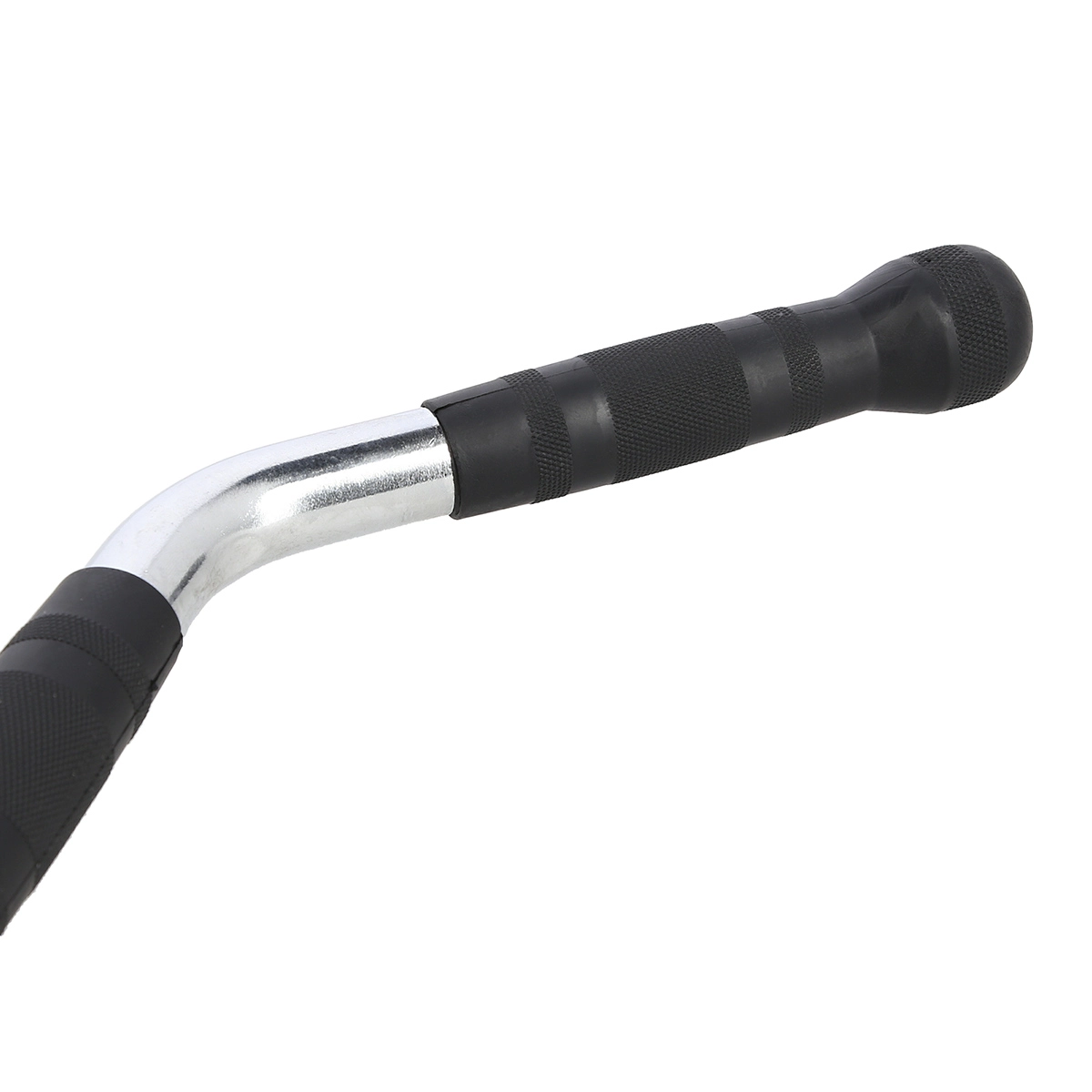 Construcția cromată, robustă, cu ochi central de 14 mm asigură conectare rapidă și sigură la toate aparatele cu scripeți uzuale. Distanțele și lungimile variate ale mânerelor permit o setare naturală pentru exerciții precum tragerea scripeților la piept, răsuciri/ramări la cablu din șezut sau împingeri pentru triceps, maximizând activarea mușchilor fără compromisuri.