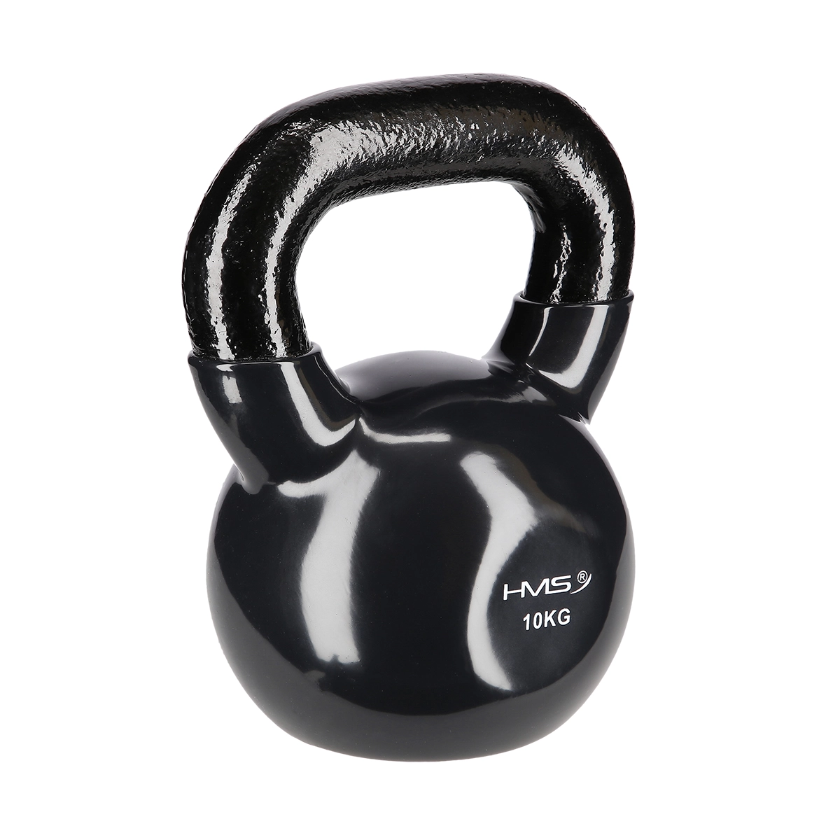 Kettlebell HMS de 10 kg este realizat din oțel durabil cu suprafață din vinil, care protejează podeaua și atenuează zgomotul. Baza plată menține clopotul stabil la așezare și ușurează pregătirea pentru exerciții. Mânerul texturat, lat oferă o prindere sigură pentru execuție tehnică.