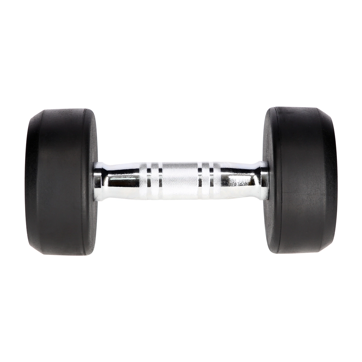 Stratul gros de cauciuc absoarbe șocurile, reduce zgomotul și protejează atât gantera, cât și suprafața de antrenament. Ideală pentru home gym și săli de fitness comerciale.