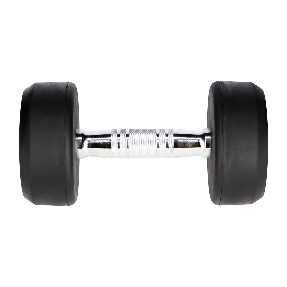 Capetele din fontă acoperite cu un strat gros de cauciuc protejează gantera și podeaua, amortizează șocurile și reduc zgomotul la așezare.