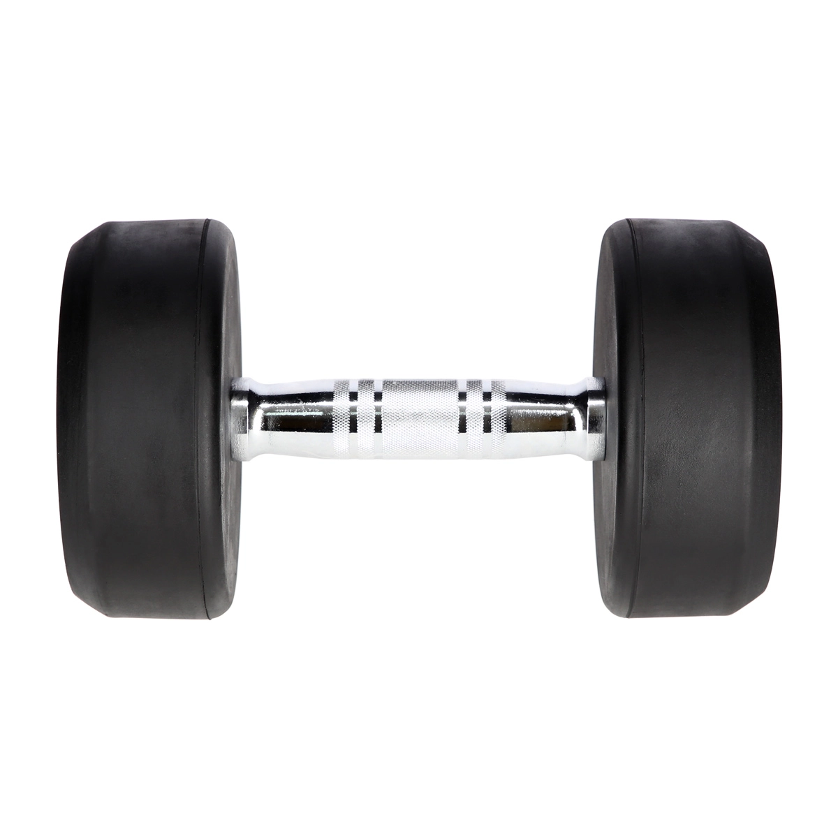Miezul din fontă acoperit cu un strat gros de cauciuc protejează gantera și podeaua, reduce zgomotul și crește durata de viață în condițiile solicitante ale sălii.
