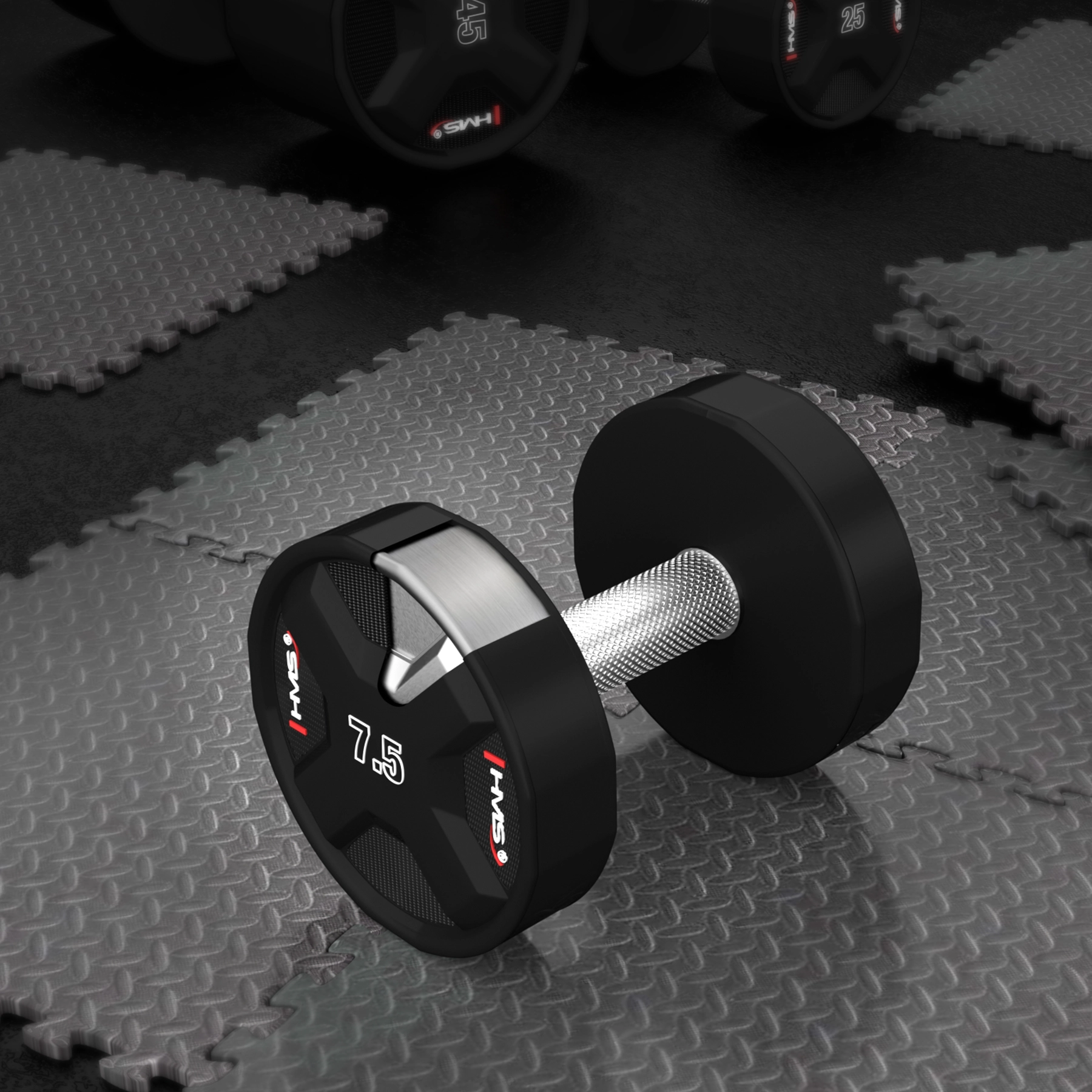 Ganterea HMS HPC este proiectată pentru antrenamente solicitante și utilizare pe termen lung. Capetele din poliuretan sunt foarte rezistente la uzură, căderi și șocuri, nu degajă miros neplăcut și sunt ușor de întreținut. Mânerul de oțel cromat, striat, oferă o priză sigură și confortabilă chiar și cu palmele transpirate.