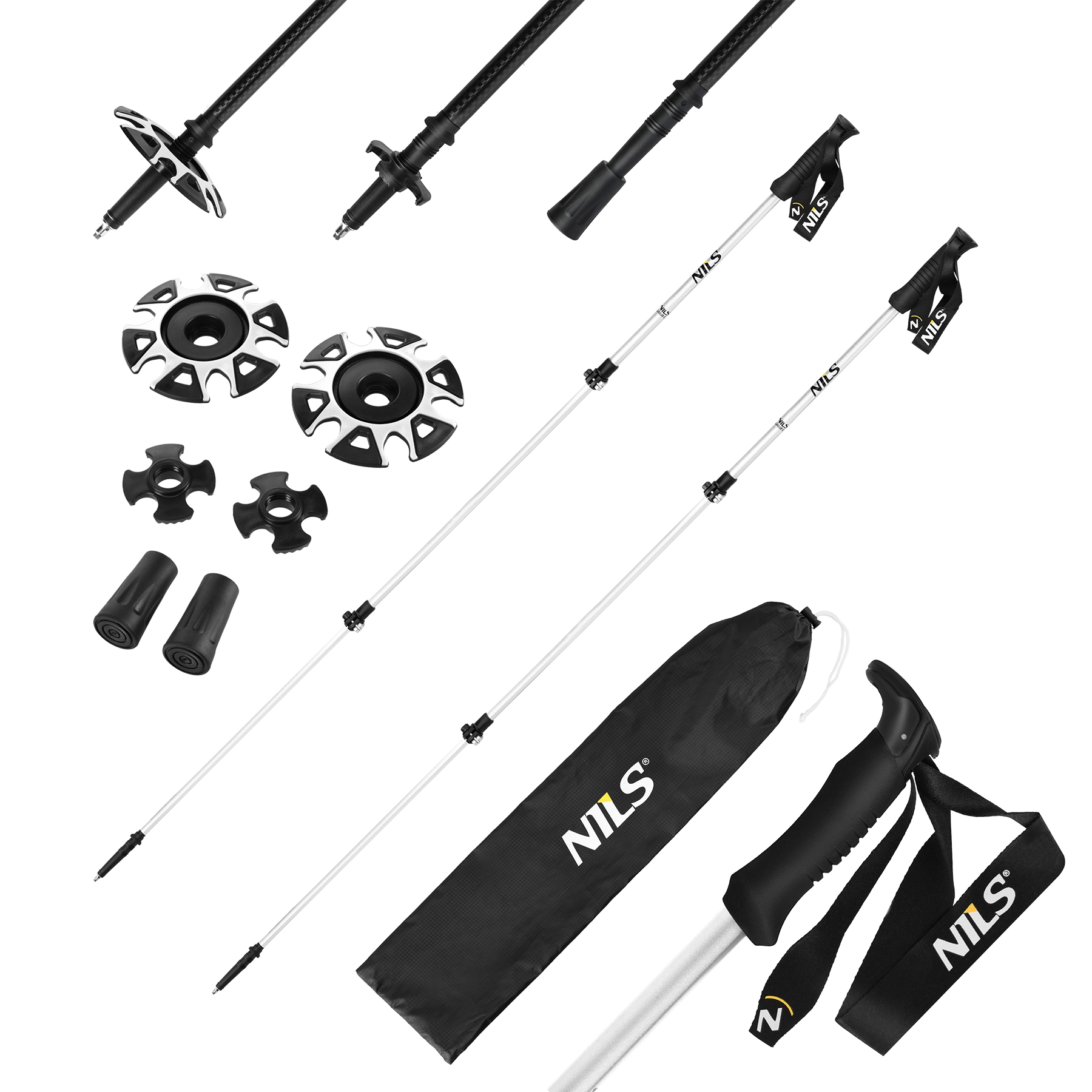 Mânerele din spumă EVA ergonomice reduc oboseala mâinilor, evacuează bine transpirația și oferă aderență sigură chiar și pe umed. În pachet găsiți două seturi de rozete, vârfuri din cauciuc și husă de transport – sunteți astfel pregătiți pentru diverse suprafețe și anotimpuri.