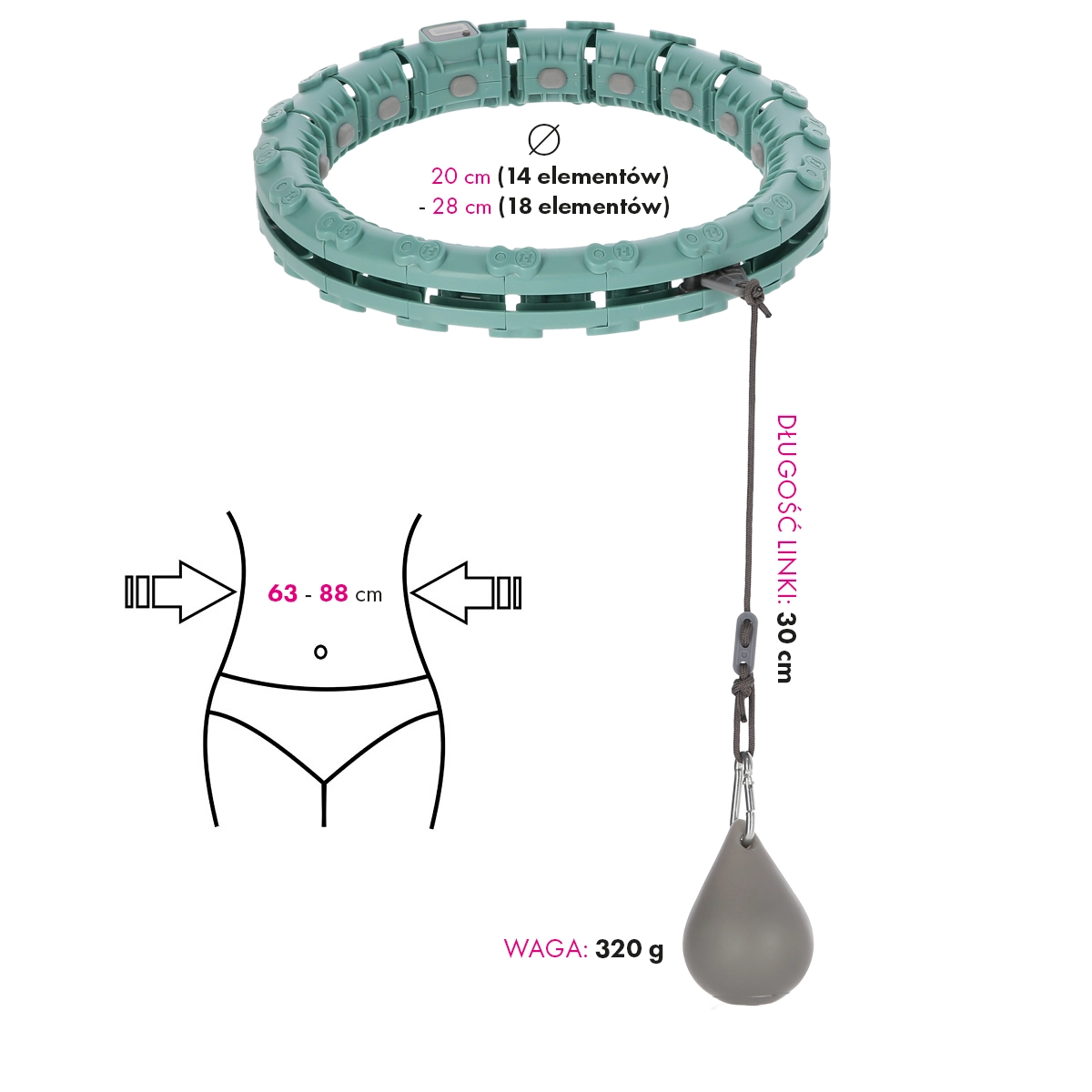 Hula hoop-ul inteligent de masaj este alcătuit din module pe care le prinzi simplu, în funcție de circumferința taliei. Proeminențele de masaj din interior stimulează plăcut zona abdomenului și a șoldurilor și, în același timp, atenuează vibrațiile. Datorită greutății rotative pe rulmenți, obții o mișcare lină și o eficiență mai mare a antrenamentului, pe care o determini prin viteza de rotire și lungimea șnurului.