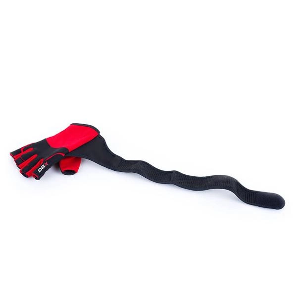 Banda elastică lată, cu dublă înfășurare în jurul încheieturilor și închidere dublă cu arici, oferă stabilitate și susținere superioare la împins, tras și lucrul la bară. Mănușile în combinație de negru‑roșu sunt fabricate din piele sintetică, poliester și cauciuc, asigurând o potrivire bună, aderență sigură și durabilitate în timp.