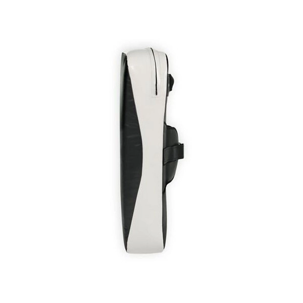 Palmă profesională de antrenament pentru arte marțiale, cu profil extins pentru protecția cotului, fabricată din material durabil în 7 straturi, cu curele întărite cu catarame metalice și două orificii de ventilație pentru evacuarea presiunii. Fixarea stabilă este asigurată de închiderea lată, iar combinația alb-negru oferă un aspect modern oricărui antrenament.