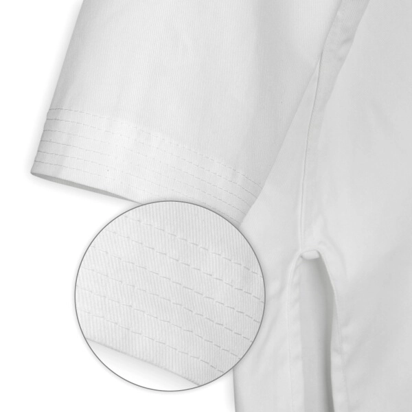 Croiala confortabilă și funcțională susține tehnica și loviturile dinamice. Pantalonii largi cu clin oferă libertate maximă de mișcare, iar talia este prevăzută cu elastic și șnur pentru ajustare personalizată. Cusăturile triple și marginalele întărite cresc durabilitatea întregului set. Pachetul include și o centură albă, ca să poți începe imediat antrenamentele.