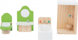 Oferă-le copiilor o baie realistă pentru căsuța lor de păpuși. Acest set din 4 piese, în culori moderne, îmbină lemn masiv și elemente rezistente pentru joacă de zi cu zi. Dimensional se potrivește păpușilor flexibile de până la 12 cm și se integrează perfect în majoritatea căsuțelor.
