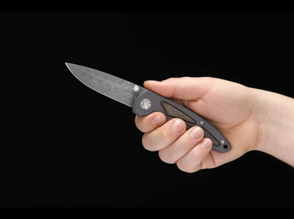 Mânerul din aluminiu anodizat gri cu inserții din lemn exotic Ziricote oferă o prindere sigură și un aspect elegant. Deschiderea este lină datorită pinilor ambidecși pentru degetul mare, iar siguranța este asigurată de fiabilul Linerlock. Clema de buzunar practică facilitează purtarea și accesul imediat.