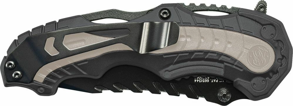 Cuțitul pliabil de buzunar SMITH & WESSON M&P M.A.G.I.C. este conceput pentru utilizare zilnică și reacție rapidă. Datorită deschiderii asistate M.A.G.I.C., bolțurilor ambidextre pentru degetul mare și flipper-ului, cuțitul se deschide sigur și instantaneu cu o singură mână. Lama Tanto din oțel inoxidabil 4034 cu finisaj negru îmbină vârful perforant cu tăișul parțial zimțat pentru tăiere eficientă a frânghiilor, textilelor și cartonului.