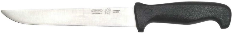 Mânerul ergonomic, modelat din plastic negru rezistent, se potrivește bine în mână, sporind confortul și controlul asupra cuțitului chiar și la tăieri prelungite. Cuțitul este certificat pentru contact cu alimentele conform normelor UE și a fost fabricat cu accent pe calitate în Republica Cehă.