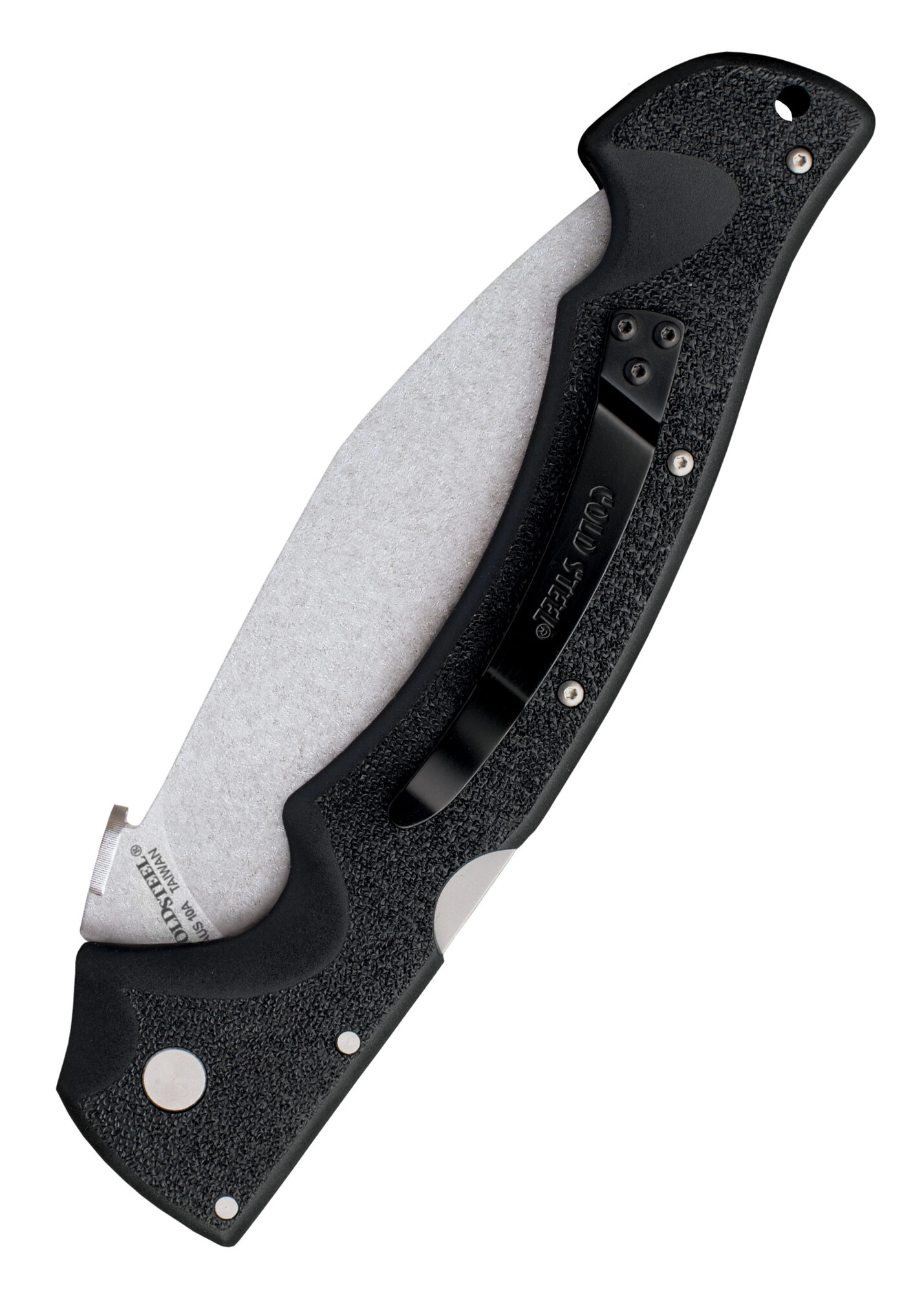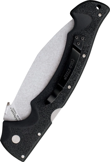 Modelul Cold Steel Rajah II aduce performanța unui kukri mare într-un format pliabil compact. Oțelul japonez AUS-10A, cu un raport excelent între tenacitate și rezistență la uzură, completat de finisajul stonewash, maschează mai bine zgârieturile fine și reduce frecarea la tăiere. Geometria de tip kukri permite cioplirea eficientă și tăieturi adânci cu efort minim.