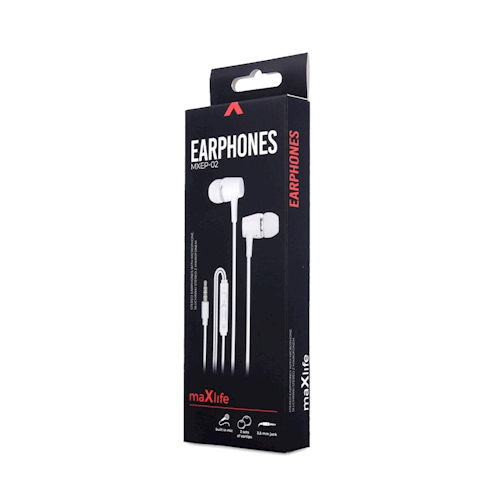 Căști cu fir Maxlife MXEP-02, ușoare și confortabile, în culoare albă, pentru ascultare zilnică în mișcare. Oferă sunet clar, microfon integrat pentru apeluri handsfree și jack universal de 3,5 mm. Datorită cabului de 1,2 m aveți libertate de mișcare și o conexiune stabilă, fără întreruperi.