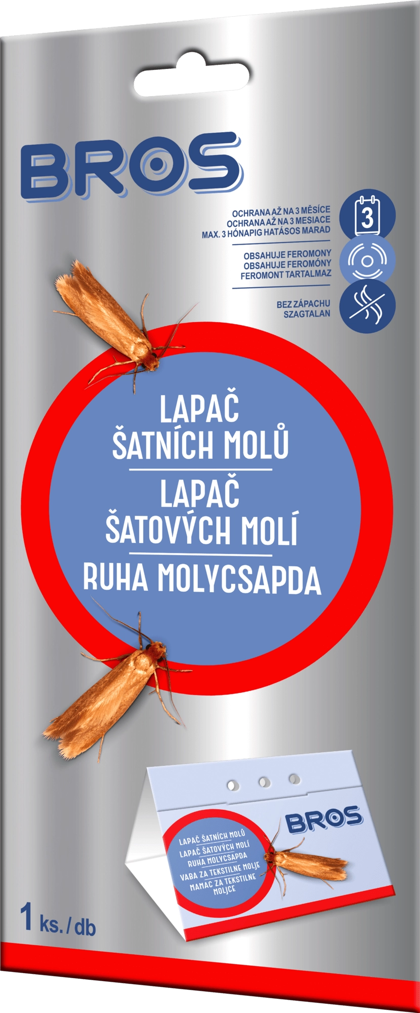 Păstrează-ți garderoba în siguranță față de dăunători. Bros capcană pentru moliile hainelor este un ajutor discret, fără vapori și ușor de utilizat, care datorită bentiței adezive cu feromoni atrage și prinde în mod fiabil moliile adulte ale hainelor. Ideal pentru protecția pe termen lung a țesăturilor fine, a lânii sau cașmirului.
