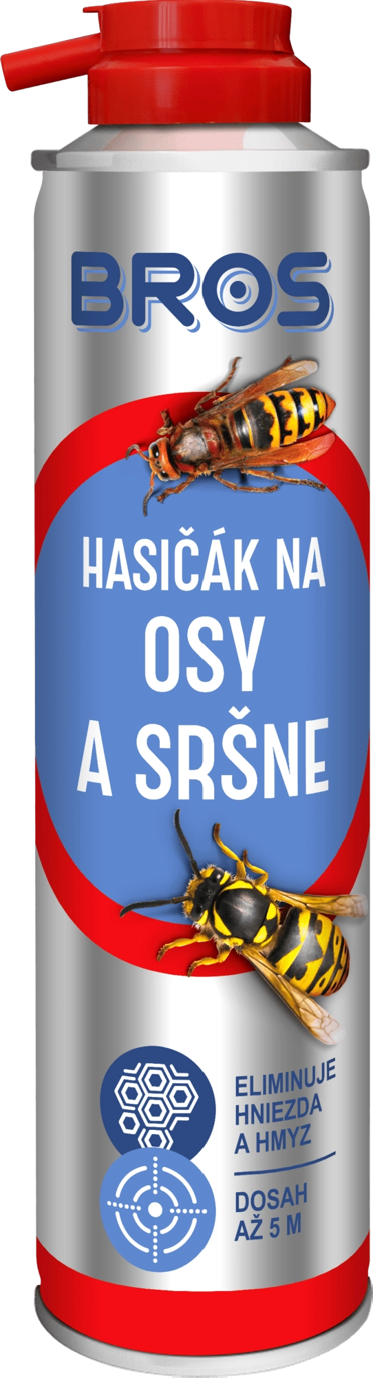Spray-ul BROS cu acțiune rapidă împotriva viespilor și hornetelor, în formă de „stingător”, oferă un efect imediat și acționează încă câteva zile după aplicare. Datorită jetului puternic are un raze de până la 6 metri, permițând îndepărtarea în siguranță a cuiburilor de la distanță.