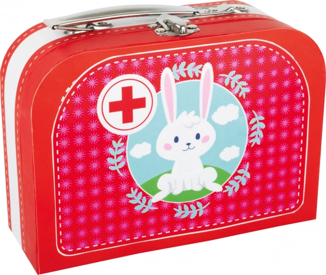 Set drăgălaș pentru micii doctori: trusa de doctor SMALL FOOT cu iepuraș aduce un set din 9 piese într-o servietă practică și portabilă și un iepuraș de pluș moale pentru jocul de-a doctorul. Copiii de la 3 ani în sus pot exersa îngrijirea pacienților cu stetoscopul, termometrul și seringa din materiale sigure: lemn, carton și material textil.