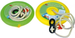 Pachetul include șezutul confortabil, frânghia rezistentă (cca 175 cm) și elementul de prindere – montajul este rapid și ușor. Înălțimea recomandată pentru agățarea șezutului este de 35–59 cm deasupra solului. Produsul este realizat din plastic ușor și durabil, respectă CE și EN 71 și este destinat copiilor de la 3 ani. Utilizați întotdeauna sub supravegherea unui adult.