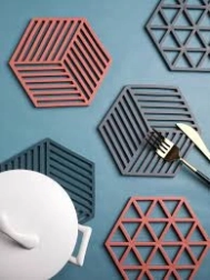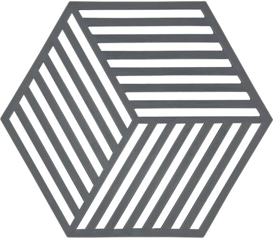 Suportul Zone Hexagon îmbină funcționalitatea cu un aspect minimalist. Forma hexagonală cu model grafic creează un accent modern în bucătărie și, în același timp, izolează în siguranță vasele fierbinți de suprafața mesei sau a blatului.