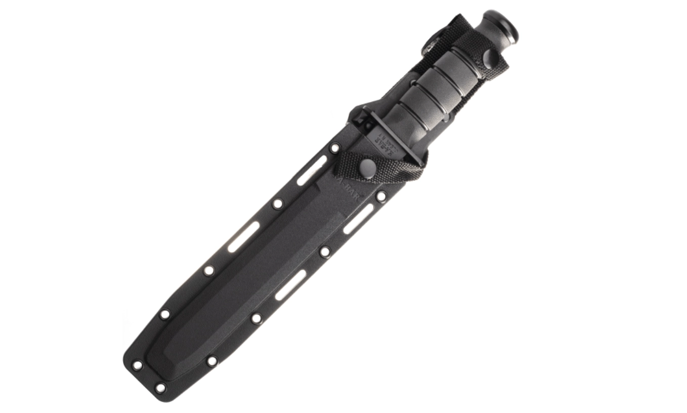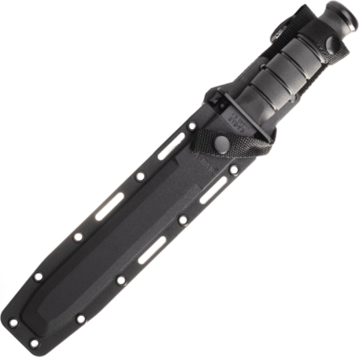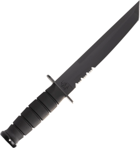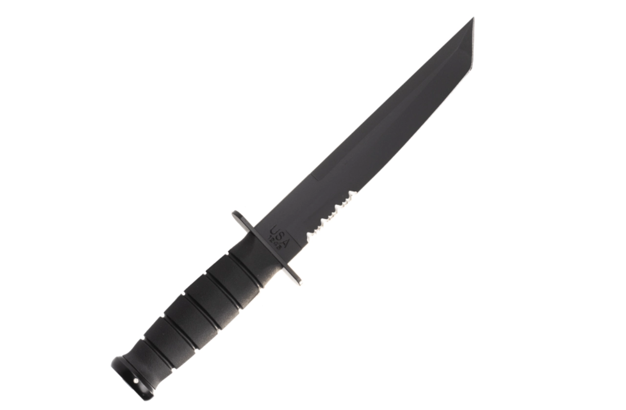 Acest cuțit tactic are la bază legendarul model U.S.M.C. KA-BAR și este proiectat pentru performanță fiabilă în condiții solicitante. Lama de tip Tanto, cu acoperire neagră, oferă penetrare excelentă și vârf robust, în timp ce tăișul parțial zimțat taie eficient frânghii, chingi și materiale mai groase. Mânerul ergonomic din Kraton oferă prindere sigură, care nu alunecă, chiar și când este ud.