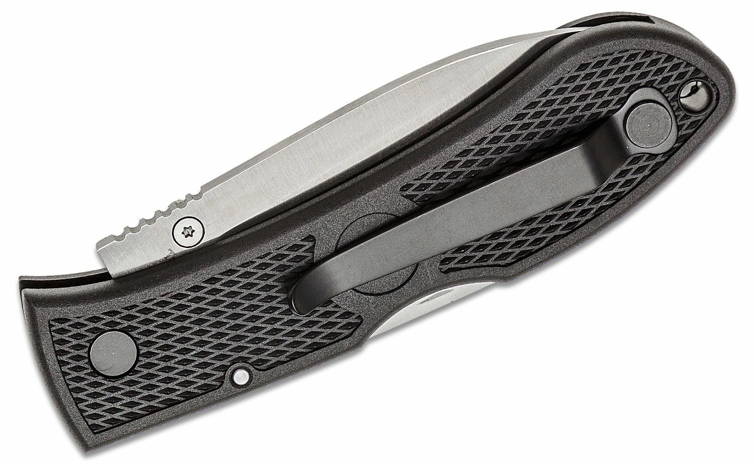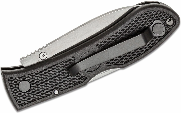 Mânerul din Zytel, în culoare neagră, are o textură plăcută pentru o prindere fermă chiar și în condiții mai dificile. Clipul reversibil permite purtare discretă în buzunar, iar orificiul pentru șnur extinde opțiunile de fixare și asigurare.